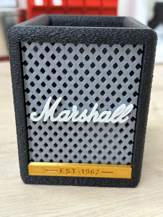 Este não é apenas um suporte de escrita é uma homenagem ao rock, ao design e à criatividade local. Inspirado nos icónicos amplificadores Marshall, este acessório impresso em 3D junta funcionalidade e personalidade numa peça que transforma qualquer secretária num palco de expressão.